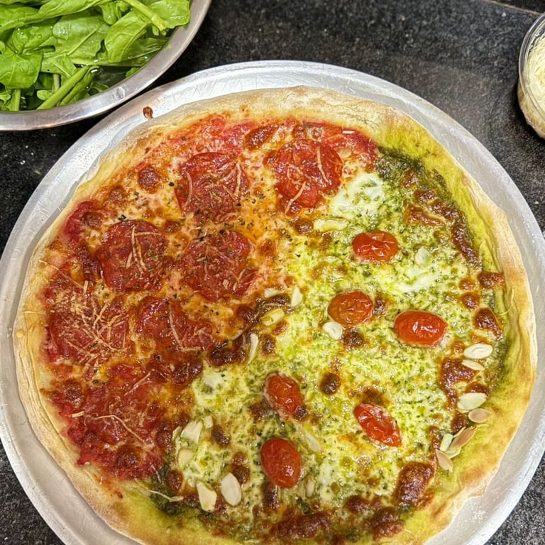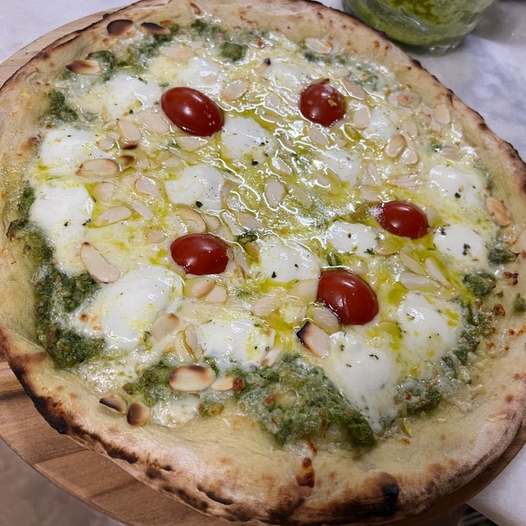 Produzimos pizzas no estilo napolitano, com bordas altas, massa leve e ingredientes frescos selecionados. Dos clássicos aos sabores autorais, cada pizza é preparada na hora, direto no forno profissional, garantindo aroma, textura e uma experiência que encanta qualquer tipo de evento.